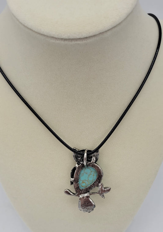 Owl Charm Pendant Necklace with Inlaid Turquoise Stone