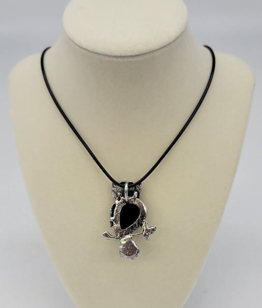Owl Charm Pendant Necklace with Inlaid Obsidian Stone